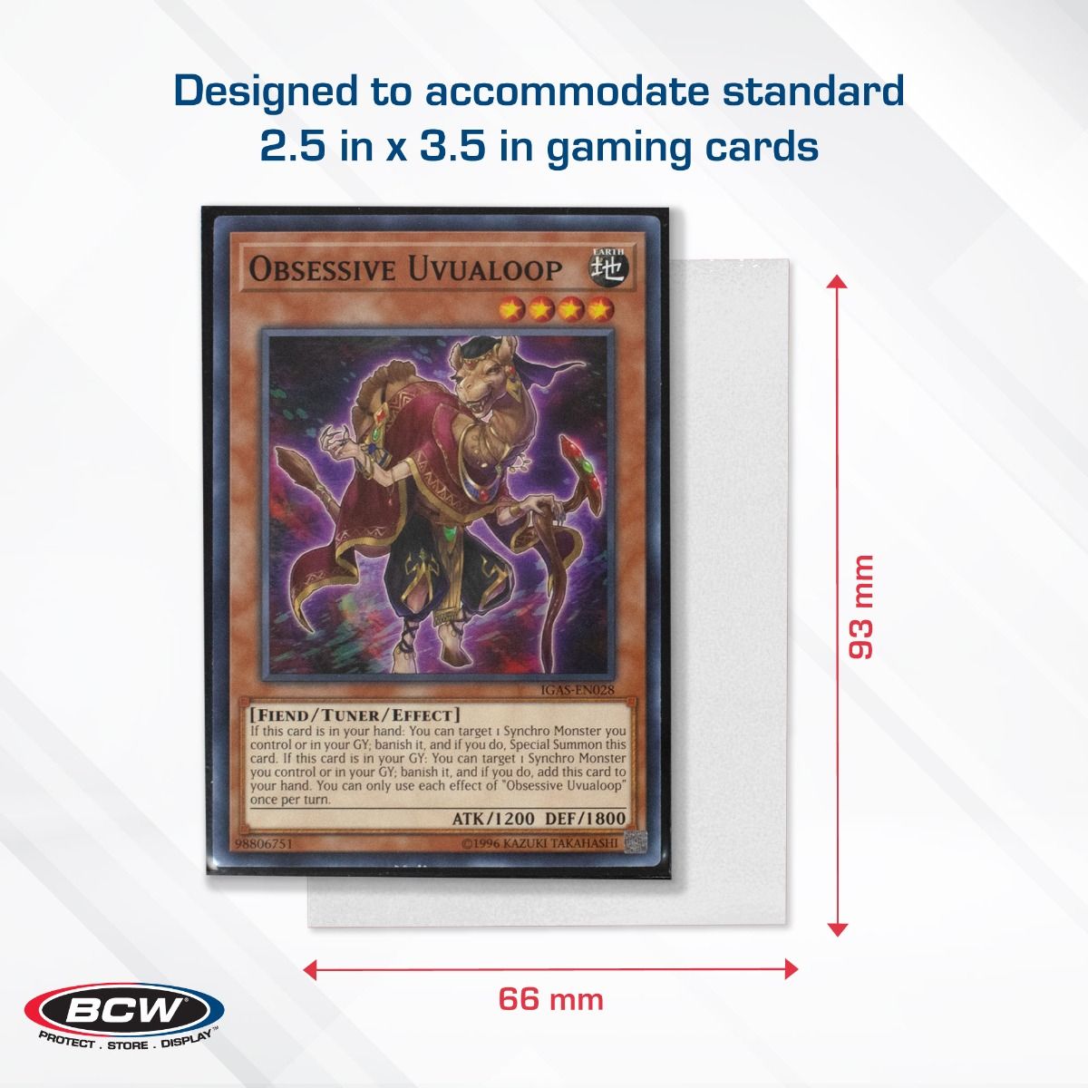 BCW introduces the next evolution in card sleeves. Elite-2 Deck Guards exceed the competition in quality and value and excel in protection. We made the sleeve longer (93mm) to better accommodate inner sleeves. We lined the back with an extra black layer to make it completely opaque.